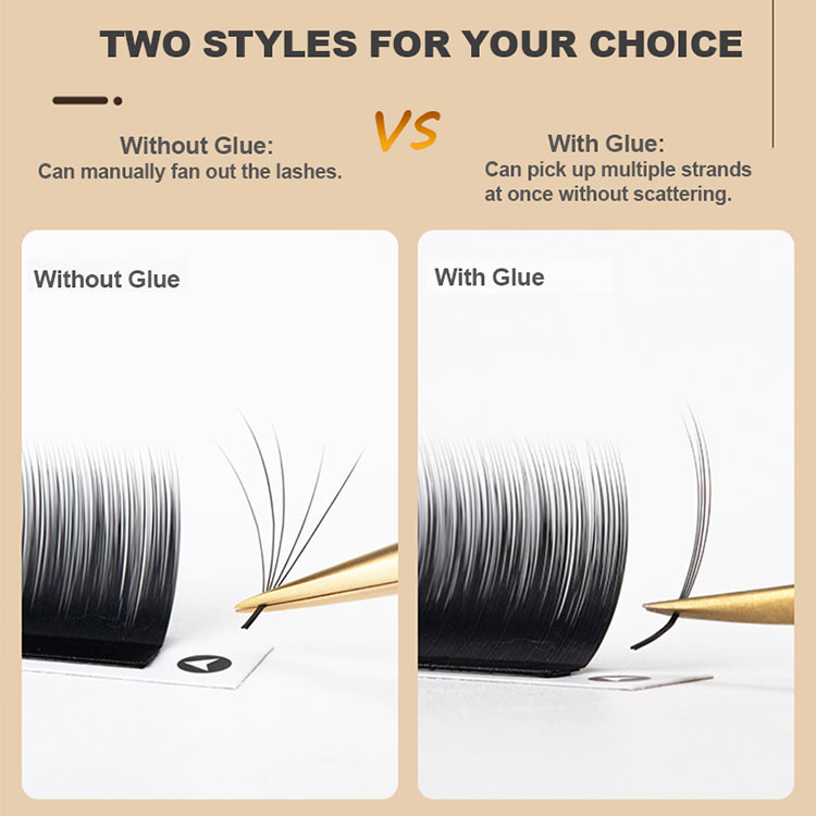 Deux styles pour votre choix: disponibles en deux options - avec de la colle pour ramasser plusieurs brins à la fois sans dispersion, ou sans colle pour étirer manuellement les cils, s'adressant à différentes préférences d'application.