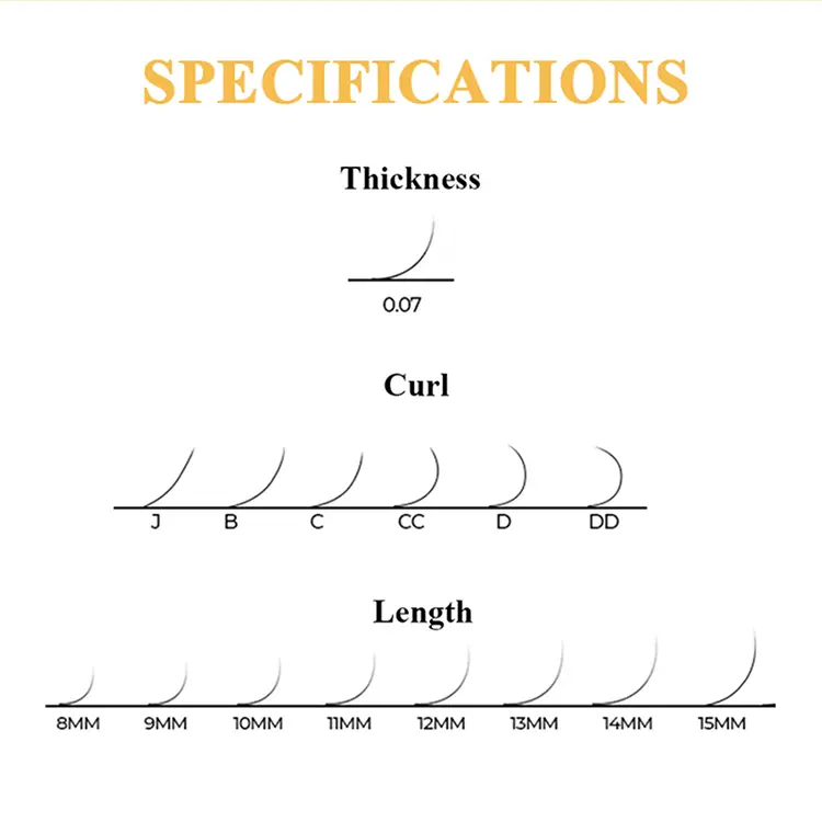 Chaque cils est conçu pour la facilité d'utilisation, caractérisé par une base propre sans résidu adhésif et un support en feuille facile à décoller. Cela rend le ventilateur particulièrement simple, en particulier pour les épaisseurs de 0,03-0,07 mm utilisé pour l'expansion du volume. Le curling peut durer plus d'un an dans un environnement de 20-25 ° C, assurant des effets durables. Que vous créiez une apparence classique ou que vous poursuiviez des cils ultra grande, SP peut offrir la flexibilité dont vous avez besoin.