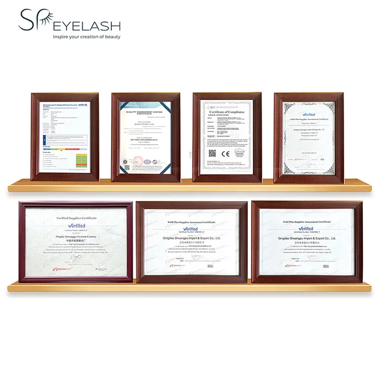 SP Eyelash a plus de 10 ans d'expérience opérationnelle et a passé de multiples certifications de système de gestion de la qualité et de l'environnement telles que ISO: 9001, ISO: 14001, ISO: 22716, etc. Les sociétés et les usines intégrées prennent en charge la grossesse à grande échelle et sont équipées d'inspecteurs de qualité QC pour inspecter l'ensemble du processus de matières premières aux produits finis.