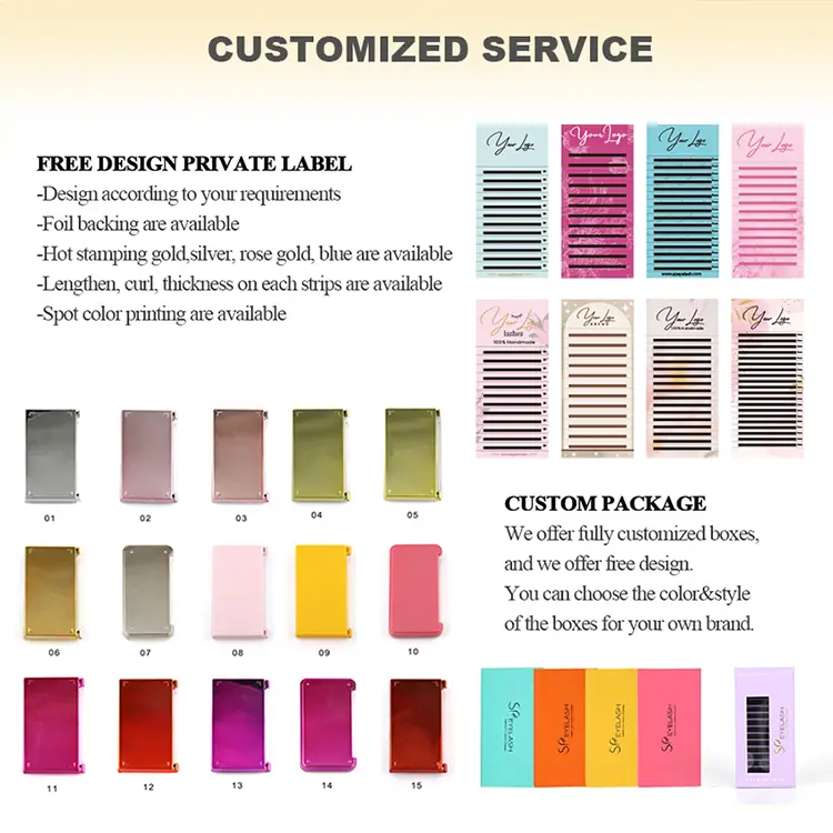 La colle sur les cils est répartie uniformément, garantissant que les racines des cils ne sont pas collantes et faciles à éliminer après utilisation. Ils sont également hautement personnalisables, permettant des ajustements à boucler, à la longueur et à l'épaisseur en fonction des exigences individuelles. Fournissez différentes finitions de matériaux (mate et brillante) pour vous assurer que tout le monde a quelque chose d'adapté à lui-même, équilibrant la qualité et la rentabilité.