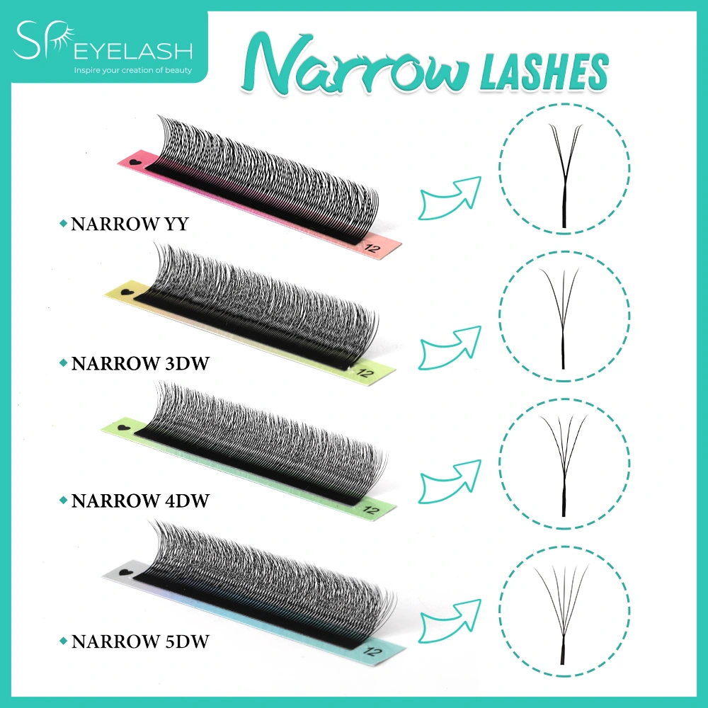 Par rapport aux cils traditionnels en forme de W, les cils 3DW étroits adoptent un arrangement plus compact et une conception de bande de cils étendue. L'agencement de cils plus densité crée une ligne de cils plus profonde et plus complète, et la forme du ventilateur plus étroit se traduit par une apparence plus nette, plus uniforme. Pendant ce temps, la plus petite base de fans associée à la bande de cils étendue forme une zone de liaison plus grande, améliorant l'adhésion et la durabilité, et évitant le désordre potentiel et l'inégalité des cils en W largeur en forme de W.