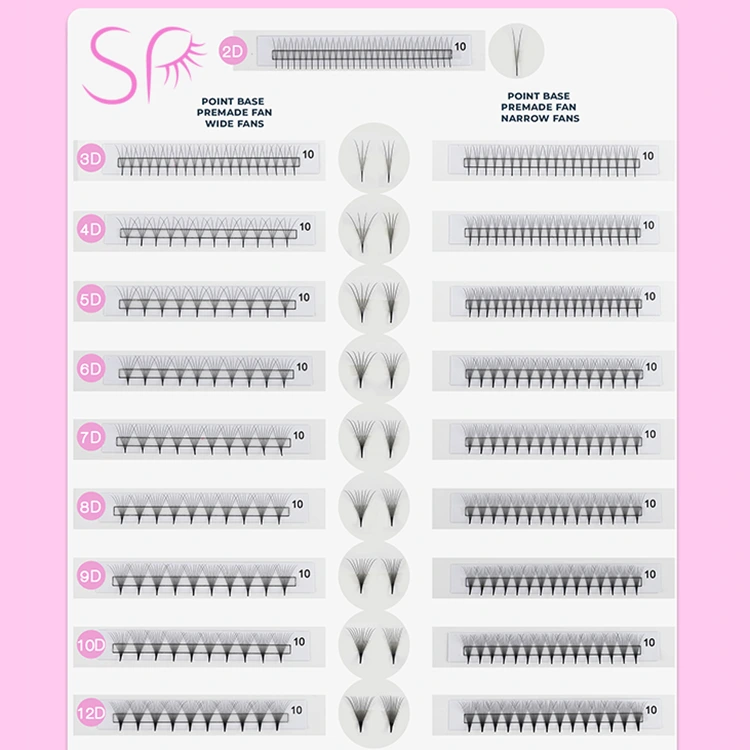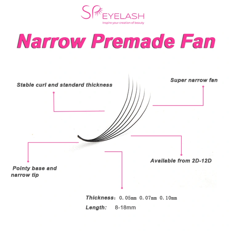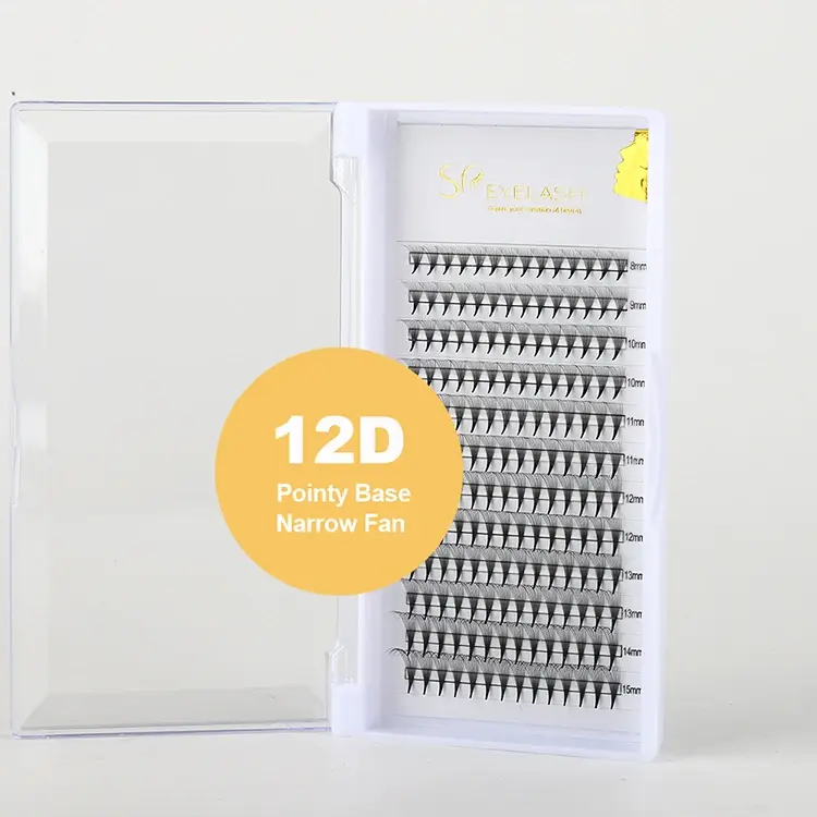 Les ventilateurs de Promade étroits 12D des cils SP sont fabriqués à partir de soie synthétique PBT de haute qualité, combinant la douceur et la légèreté des cils de vison avec le curling naturel et l'apparence dense caractéristique des cils synthétiques. Le lien de colle légère à la base assure une finition moelleuse et en lumière des plumes avec un look noir mat semi-brillant qui ajoute à la sensation luxueuse.