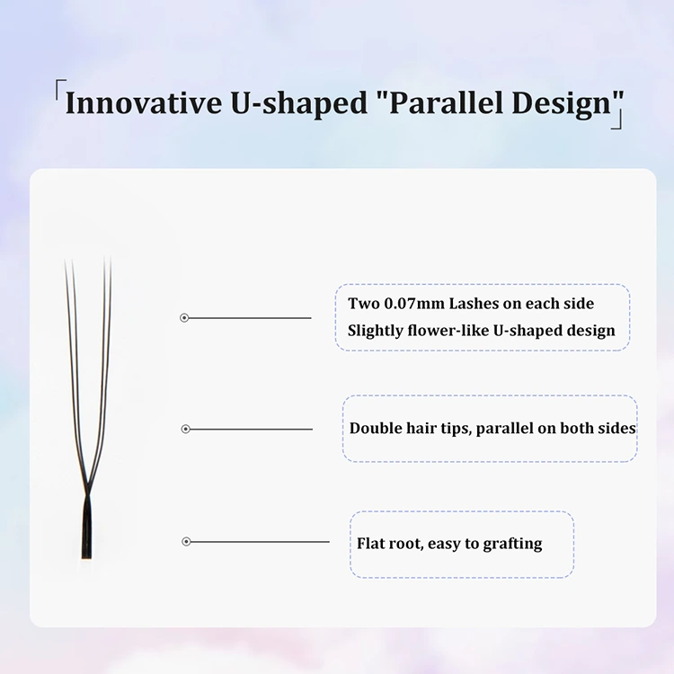La conception à double pointe en U augmente les points de contact adhésifs, améliore la fermeté et la durabilité, et présente plus d'avantages par rapport aux cils traditionnels en forme de Y.
